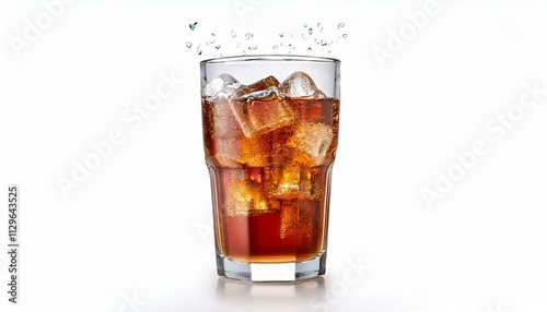 Refreshing cola drink with ice cubes in a tall glass.
