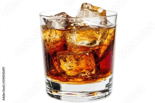 Refreshing Cola Drink with Ice Cubes in Glass on White Background