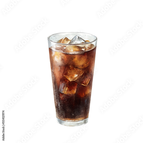 Refreshing Cola Drink with Ice Cubes on Transparent Background