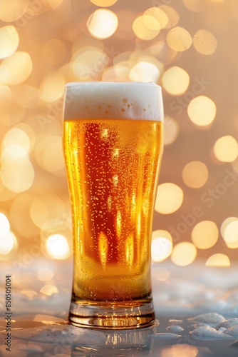 Refreshing Cold Beer Glass with Bubbles on Warm Background