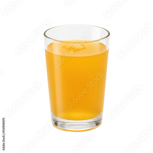 Refreshing Glass of Orange Juice with Ice Cube, Close-Up View.