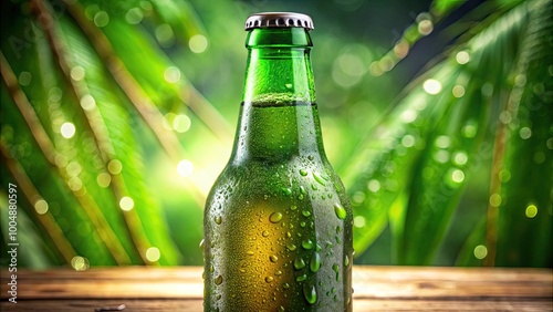 Refreshing green bottle beer with condensation on glass, ideal for summer gatherings and celebrations