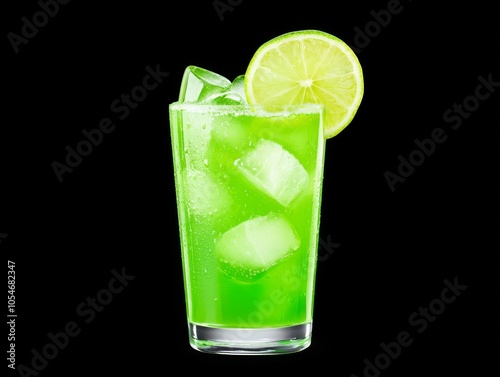 Refreshing green drink with ice and a slice of lime, perfect for a summer day.
