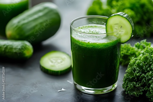 Refreshing green juice recipe with cucumbers and kale kitchen setting beverage photography