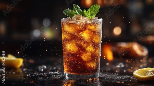 Refreshing Iced Beverage with Mint and Lemon Slices in a Glass Perfect for Summer Drinks or Co