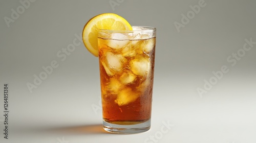 Refreshing Iced Tea Drink with Lemon Slice and Ice Cubes