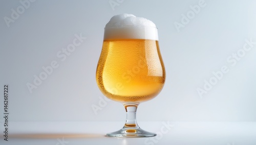 Refreshing lager in a tulip-shaped glass against a white backdrop