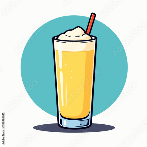 Refreshing Mango Smoothie in a Glass with Straw Illustration, Perfect for Summer Drink Concept