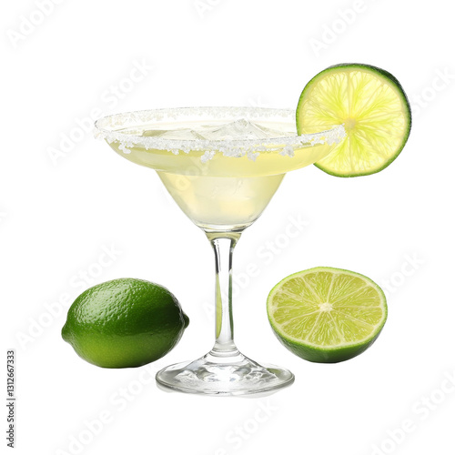 Refreshing margaritas with lime slices presented on a clean transparent background perfect for summer gatherings, margaritas with lime slice isolated on transparent background