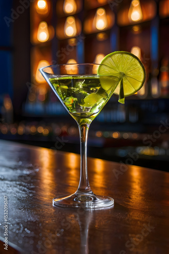 Refreshing Martini Cocktail with Lime Garnish on Bartop