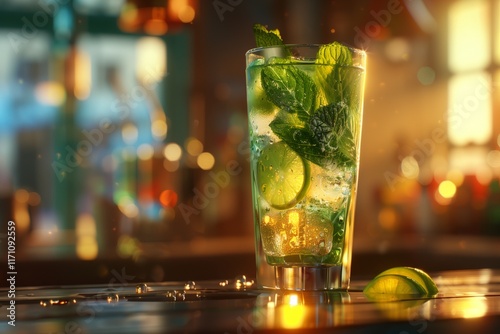 Refreshing mojito cocktail with mint and lime in a glass, perfect for summer enjoyment and relaxation.