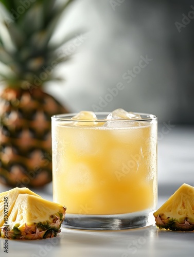 Refreshing Pineapple Juice Drink with Ice in Glass