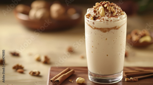refreshing Pongal milkshake, topped with nuts and a sprinkle of cinnamon