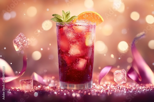 Refreshing Red Cocktail Garnished With Mint And Orange