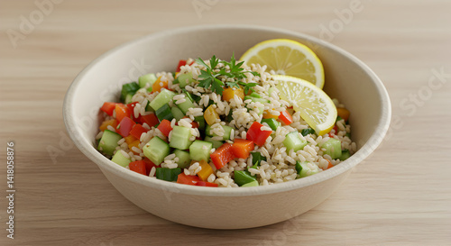 Refreshing Rice Salad With Colorful Vegetables And Lemon Dressing