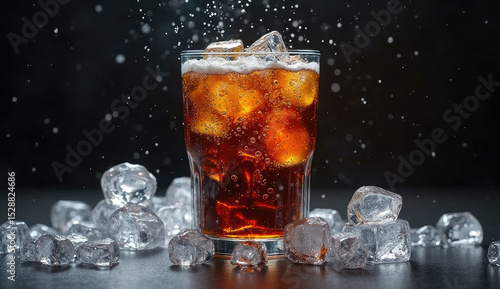 Refreshing Soda with Ice Splashing in Glass