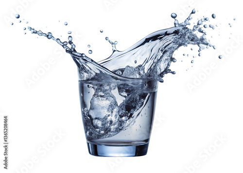 Refreshing Splash of Water with Ice Cubes in a Glass on Black Background a Stunning Closeup Photography