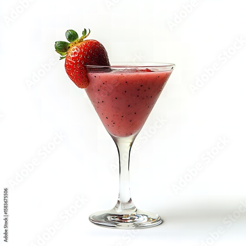 Refreshing strawberry cocktails with lime, ice, and vodka in a glass, isolated on white
