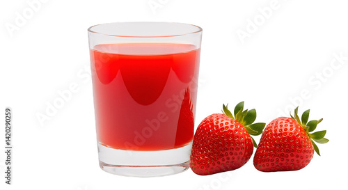 Refreshing strawberry juice in a glass with fresh strawberries around it