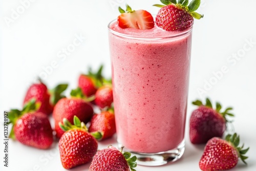 Refreshing Strawberry Smoothie with Fresh Berries on White Background