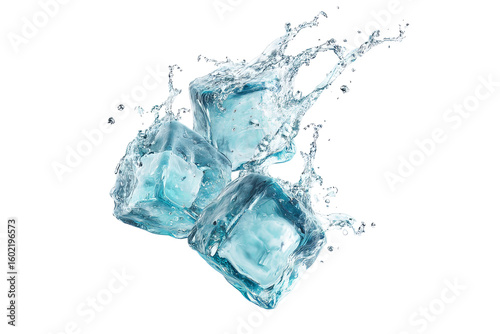 Refreshing summer ice cube splash isolated on crystal‑clear transparent background — ultra‑high‑resolution PNG cutout perfect for beverage advertising, cocktail menu design, and cooling drink branding