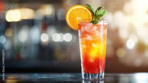 Refreshing Tequila Sunrise Cocktail: A vibrant layered drink with orange and mint