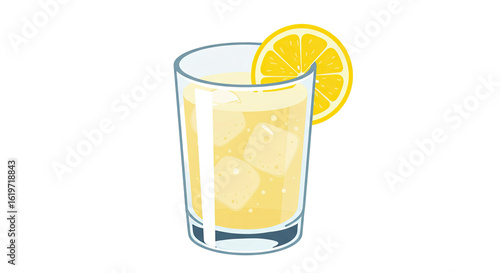 Refreshing Yellow Lemonade with Ice Cubes and Lemon Slice Graphic