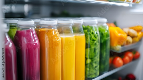 Refrigerator with Healthy Meal Prep Containers and Smoothie Bottles