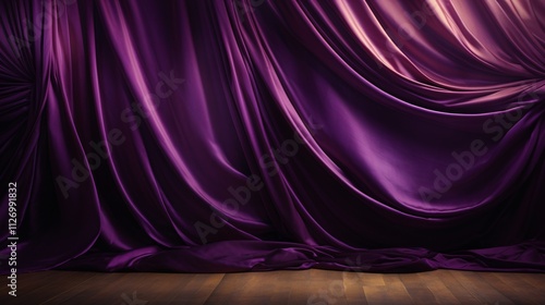Regal Elegance: Luxurious Purple and Gold Textured Silk Backdrop with Soft Shadows and Light Reflections