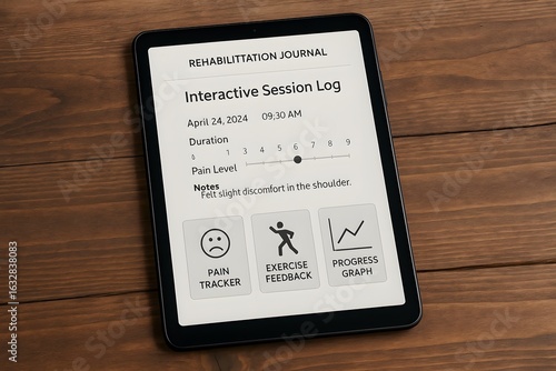 Rehabilitation journal interactive session log on digital device display