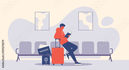Relaxing At Airport Lounge Reading A Book Before Flight Departure