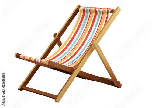 Relaxing beach chair with vibrant colors set against a stunning ocean backdrop, perfect for summer vacations on a transparent background.