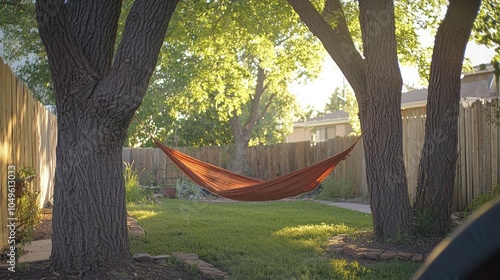 Relaxing Hammock Between Trees in Tranquil Backyard Setting