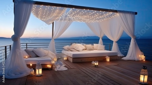 Relaxing in a Greek-Style Canopy Lounge Overlooking the Aegean Sea