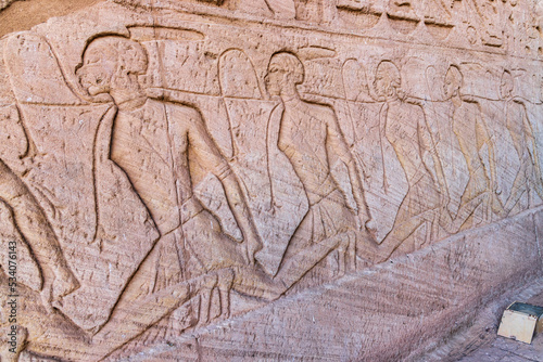 Relief mural depicting captured Nubians at the Great Temple of Ramesses II.