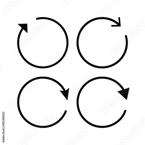 Reload Icon. Repeat business change cycle symbol. Vector set of restart or redo undo button in round shape. Flat outline of revise arrow to rewind or replay switch. Logo sign of rotation load again