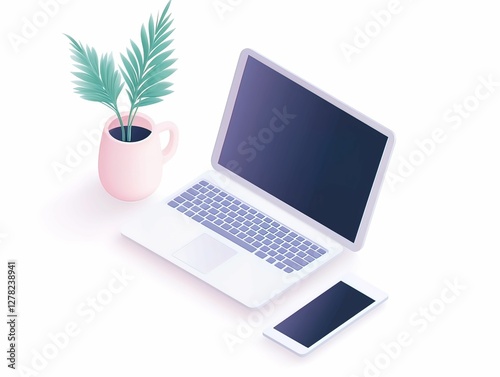Remote freelancers workspace setup home office digital tools minimalist environment top view productivity concept