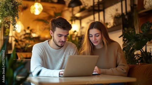 Remote work and digital nomad lifestyle featuring young professionals working on laptops in a cozy café environment.
