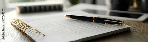 Remote Work Essential: Planner and Pen for Efficient Organization and Planning on White Background - Close-Up Shot Emphasizing Productivity in Remote Work Setting