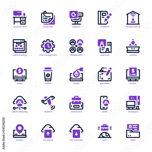 Remote Working icon pack for your website, mobile, presentation, and logo design. Remote Working icon mixed line and solid design. Vector graphics illustration and editable stroke.