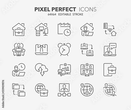 Remote working thin line icons