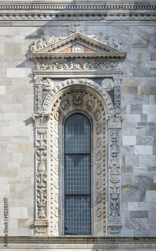 Renaissance Cathedral Window: An ornately carved Marble window from the late Renaissance Cathedral of Como in Como, Italy