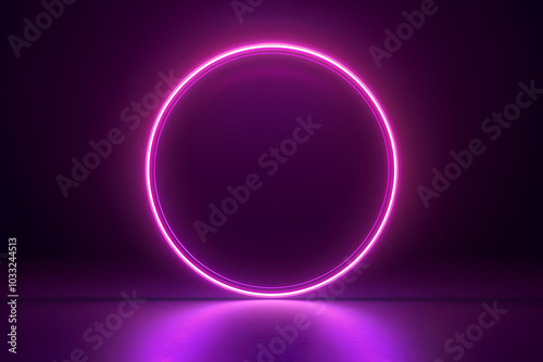 Render Neon circle rotation of frame with shining effects on dark background. Video animation Empty purple glowing techno backdrop. Round motion frame