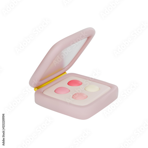 Render of beige palette with shadows of different colors and mirror. Eye shadows and makeup creation.Vector 3d illustration on isolated white background