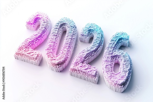 Render of numbers 2026 in vibrant colors representing a futuristic theme and creative design