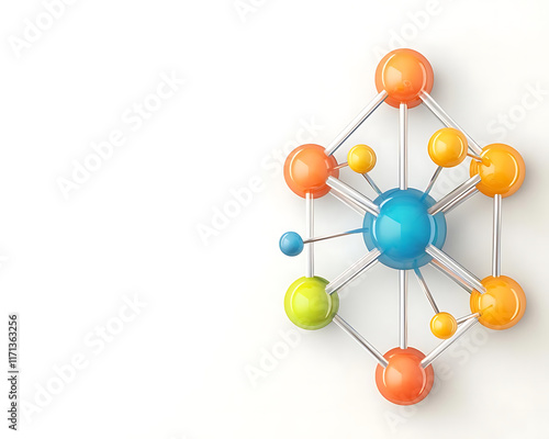 Renewable atom models. Molecular structure with colorful atoms and bonds, representing design concepts