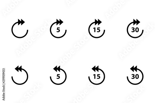 Repeat 5, 15, 30 seconds simple vector icon. Replay icons. Replay icon for application and web or Media player control. Replay icons set. 5, 15, 30 sec playback backwards.
