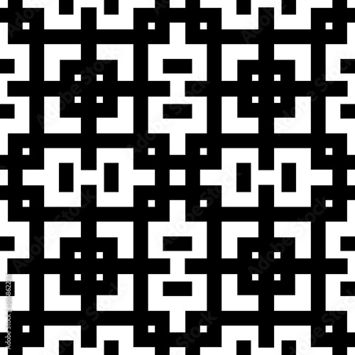 Repeated figures and symbols background. Seamless surface pattern design with ethnic ornament. Embroidery wallpaper. Mosaic motif. Digital paper for page fills, web designing. Vector.