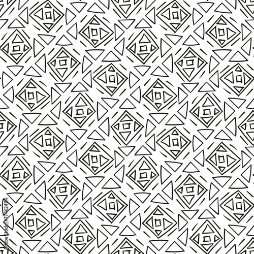 Repeating black and white ornament. Seamless pattern of lines, dots, circles, squares. Monochrome texture for printing and creating your own design