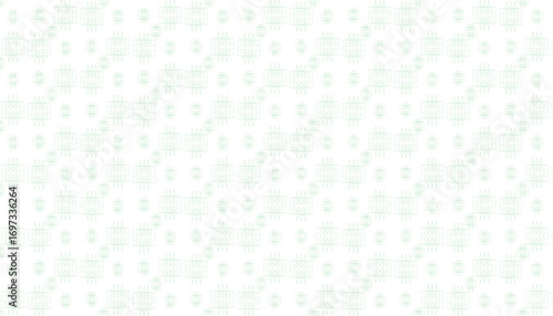 Repeating pattern of intricate green geometric wireframe structures on a white background